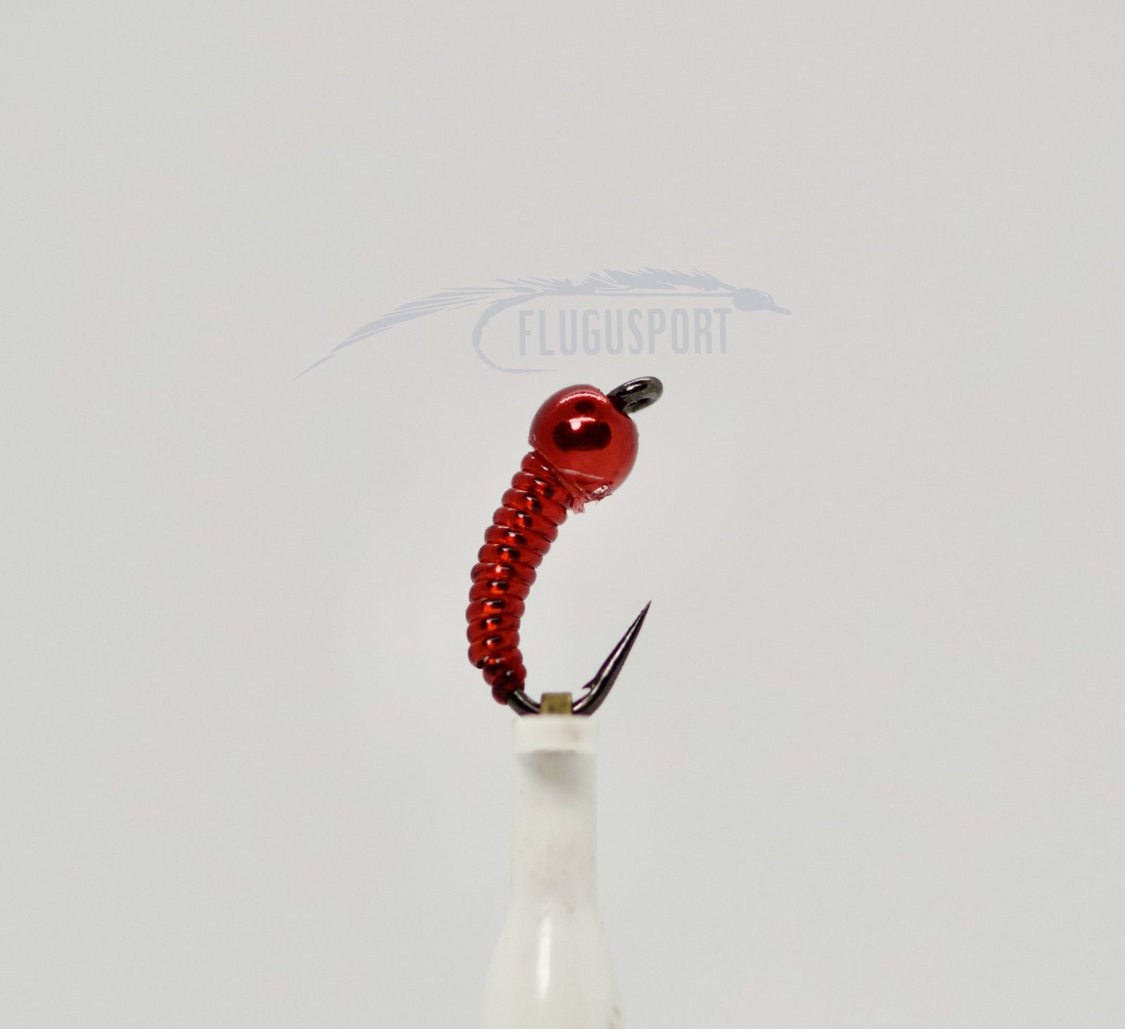 Hér er klassískur Blóðormur. Þessi Blóðormur er með silfur Uni-Mylar undir vinyl rib-inu sem gerir hana aðeins meira áberandi og sýnilegri fyrir fiskinn. Virkar vel fyrir bleikju og urriða. Þessi fluga var hnýtt á Ahrex FW540 Curved Nymph Nr.#14.  En hún virkar vel frá #10-#16